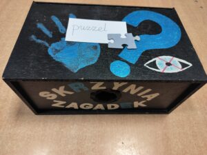 Skrzynia zagadek to akcja konkursowa skierowana do uczniów klas 1 – 3 w okresie listopad 2025 – kwiecień 2026.